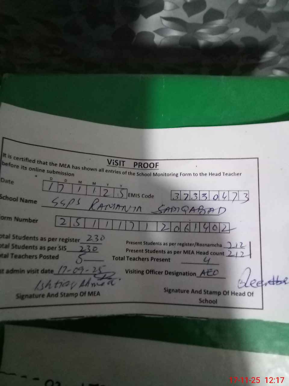 | EMIS Code: 37330473 | Name of School: GGPS REHMANIA SADIQABAD | |||