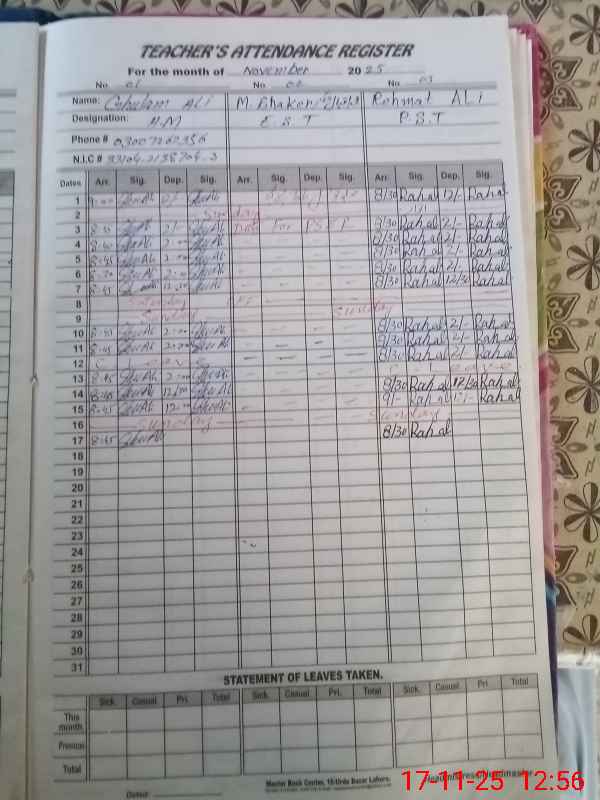| 33**** | Mu**** Qa**** Al**** | ESE Science | Contract | 0 | 0 | 0 | 0 | 0 | 0 | 0 | 0 | 0 | Absent (Un-Authorized) |