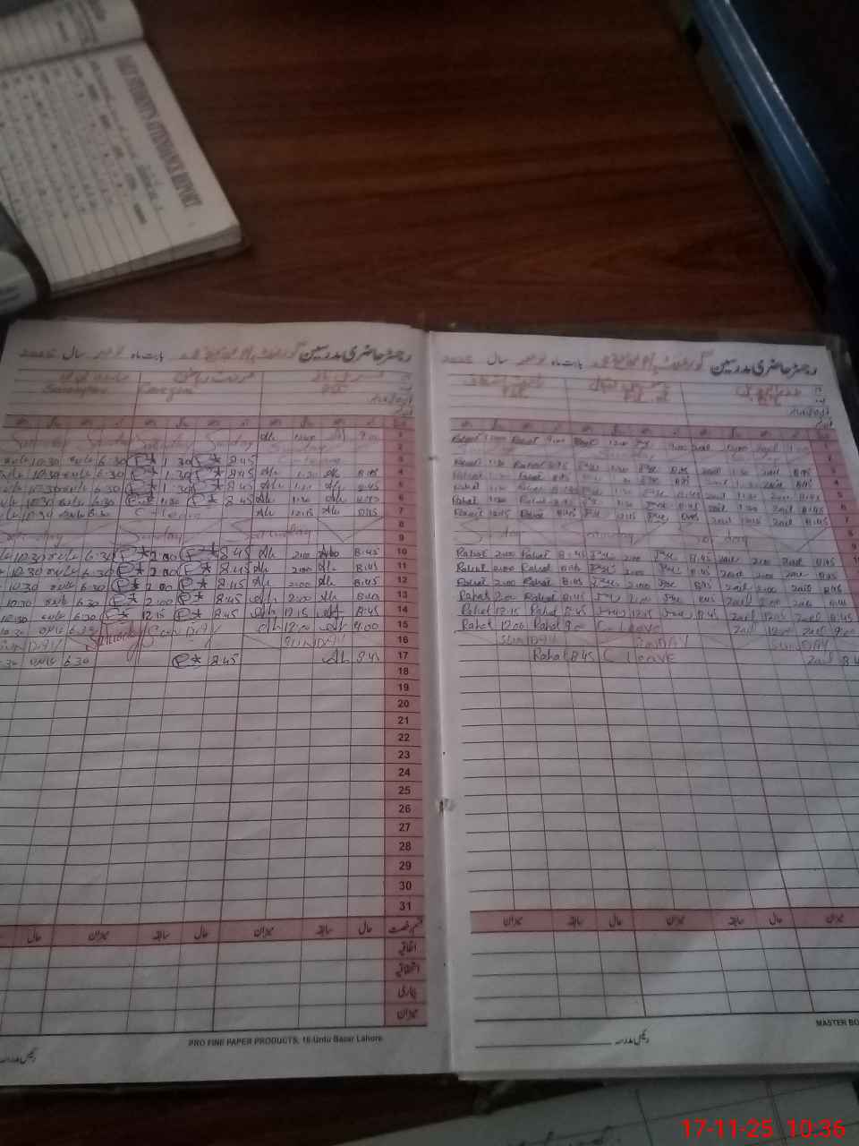 | CNIC | Full Name | Designation | R/C | Absence During Last Calender Month |
