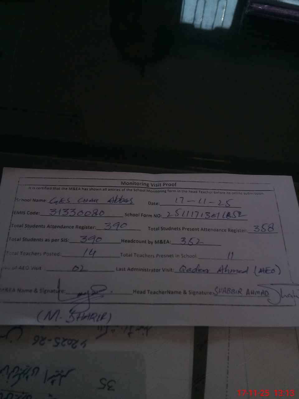 | EMIS Code: 31330080 | Name of School: GES CHAK ABBAS | |||