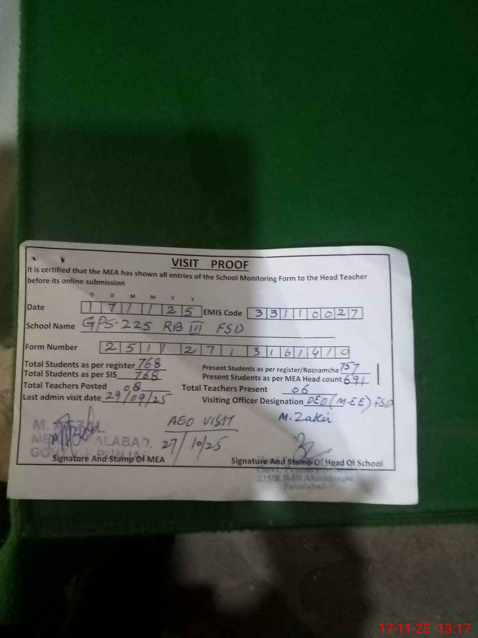 | EMIS Code: 33110027 | Name of School: GPS 225 RB III | |||
