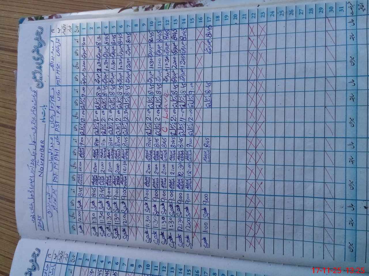 | CNIC | Full Name | Designation | R/C | Absence During Last Calender Month |