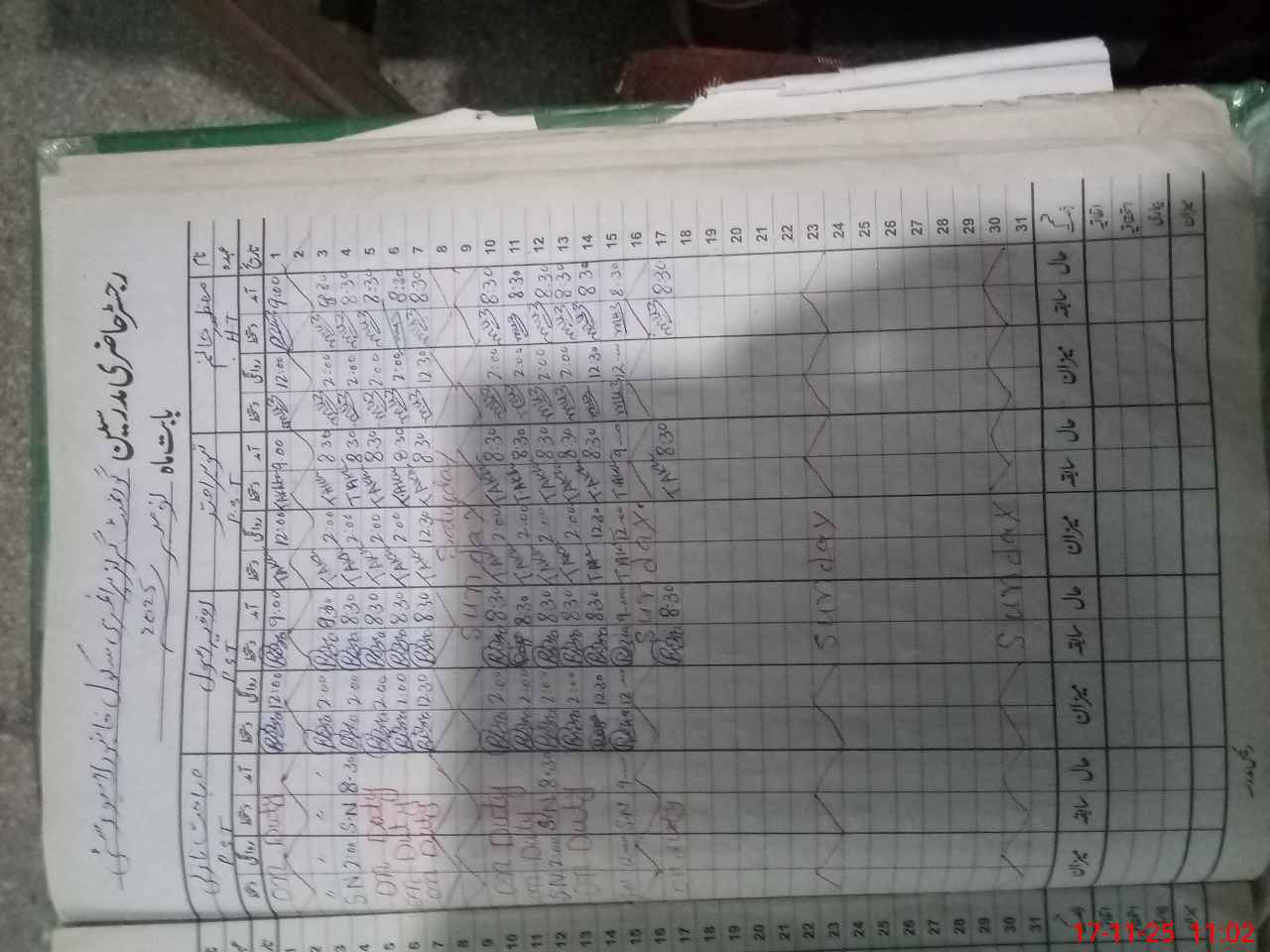 | 35**** | Sa**** Na**** | PST | Regular | 1 | 3 | 0 | 0 | 0 | 0 | 0 | 0 | 1 | Exam Duty |