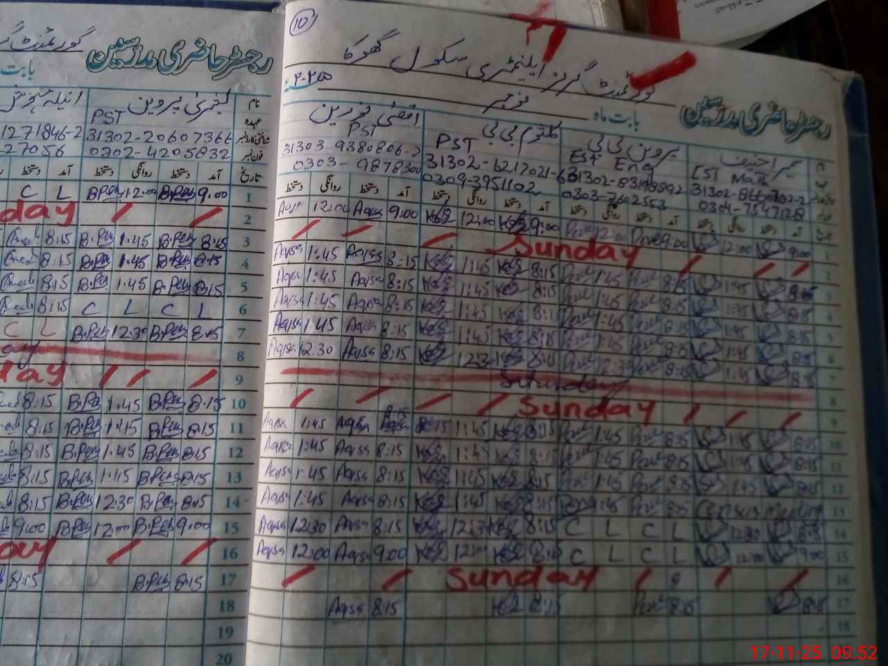 | CNIC | Full Name | Designation | R/C | Absence During Last Calender Month |