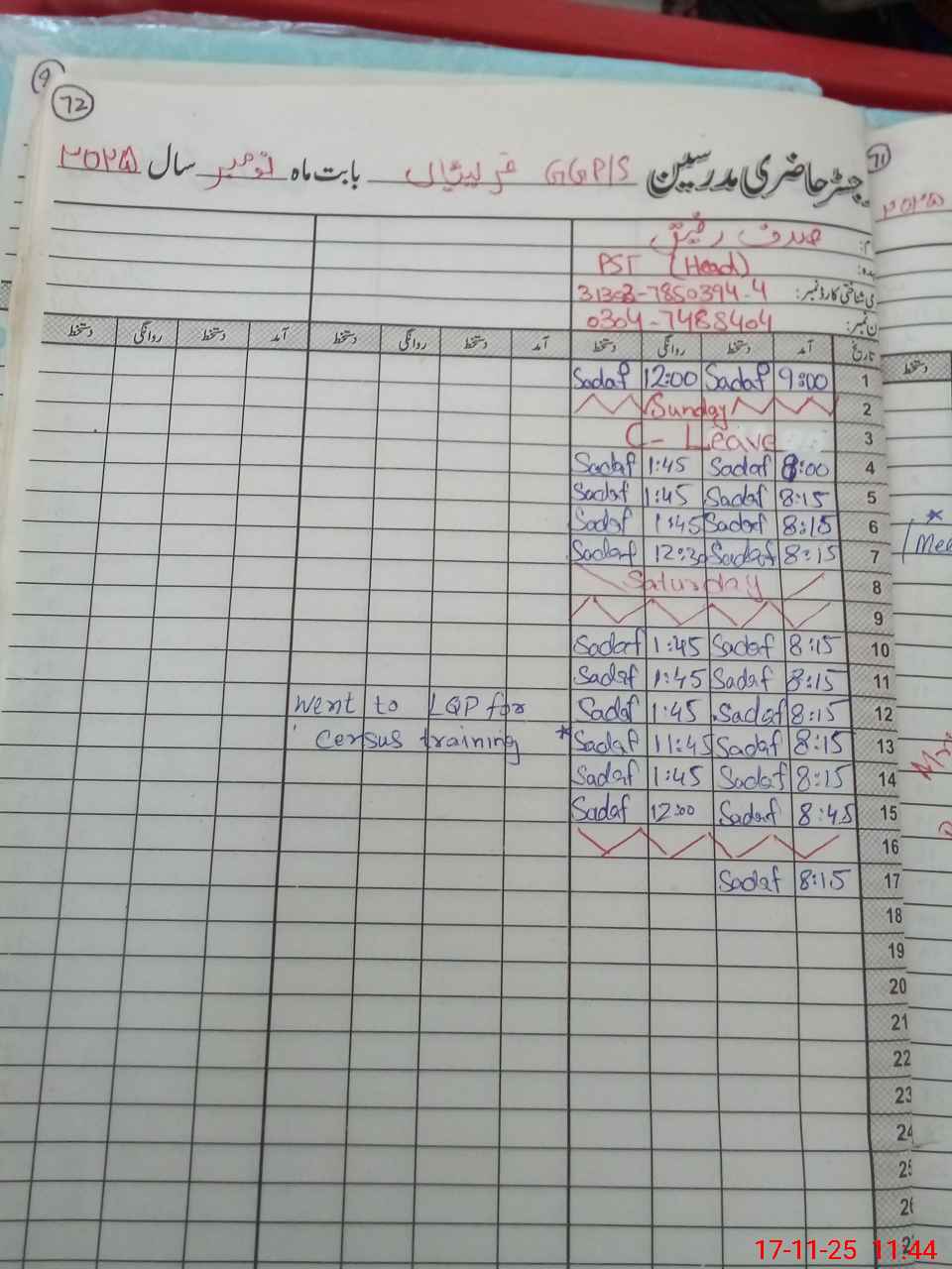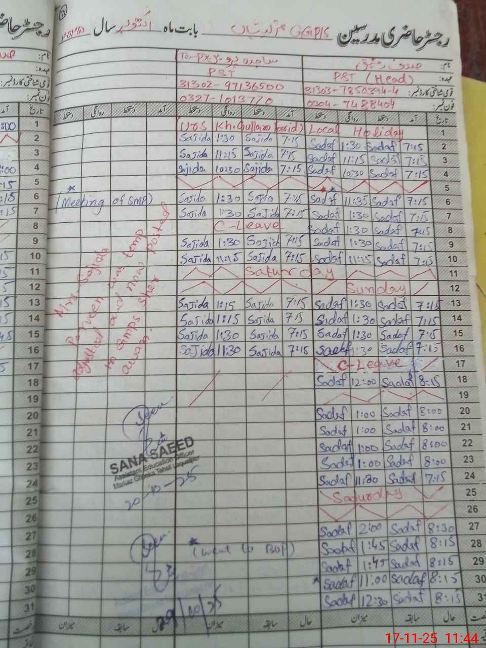 | Name: SA**** RA**** Designation: (School Headmaster's/Headmistress's) PST Phone/Cell Number: 03**** |