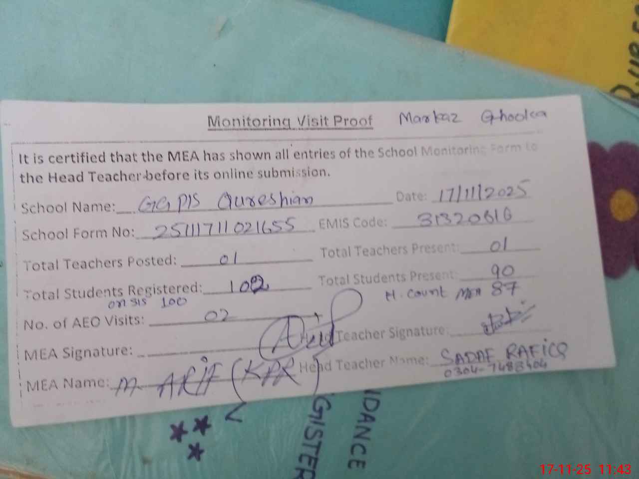 | EMIS Code: 31320616 | Name of School: GGPS QURASHIAN | |||