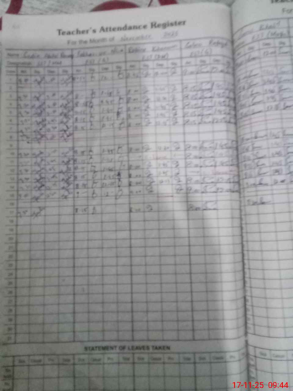 | Leave | Duty | Absent | Maternity | Medical | Ex- Pak |