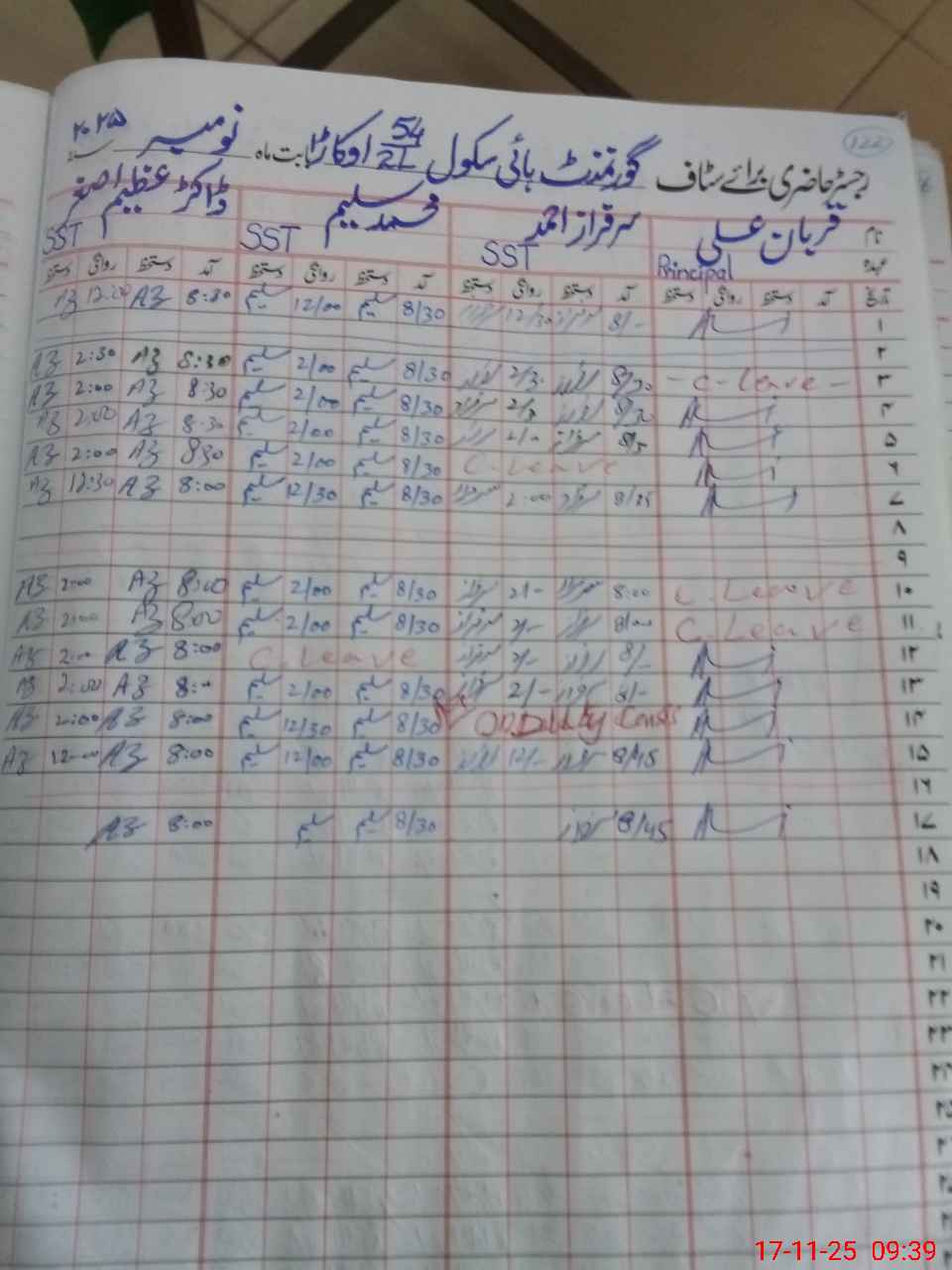 | CNIC | Full Name | Designation | R/C | Absence during last cal. month |