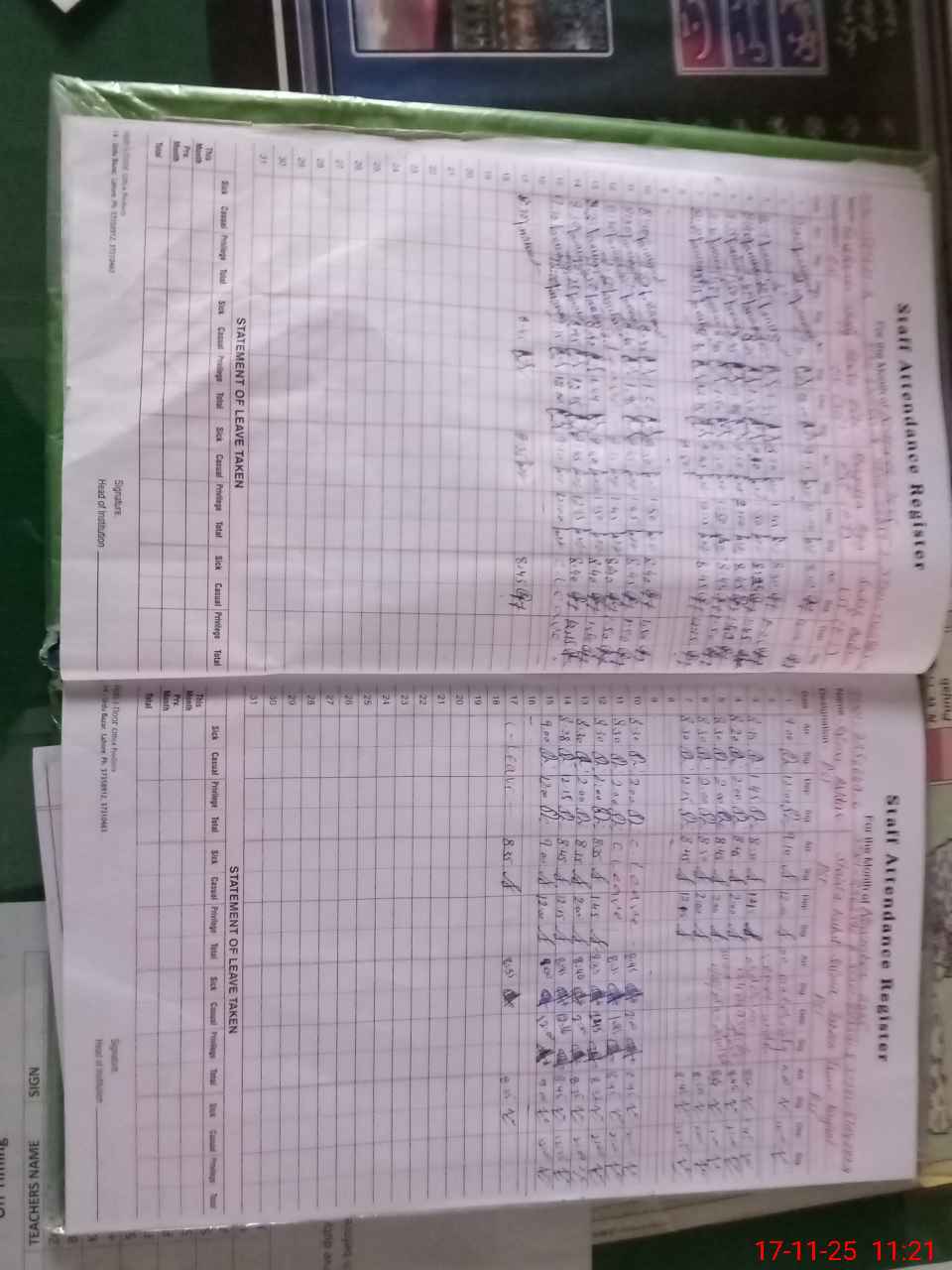 | CNIC | Full Name | Designation | R/C | Absence During Last Calender Month |