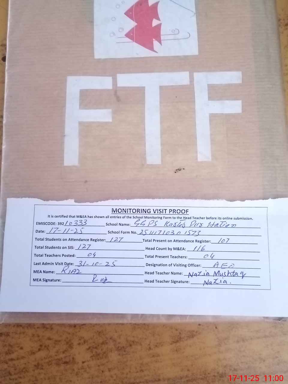 | EMIS Code: 39210333 | Name of School: GGPS KARTAR PUR HATTIAN | |||