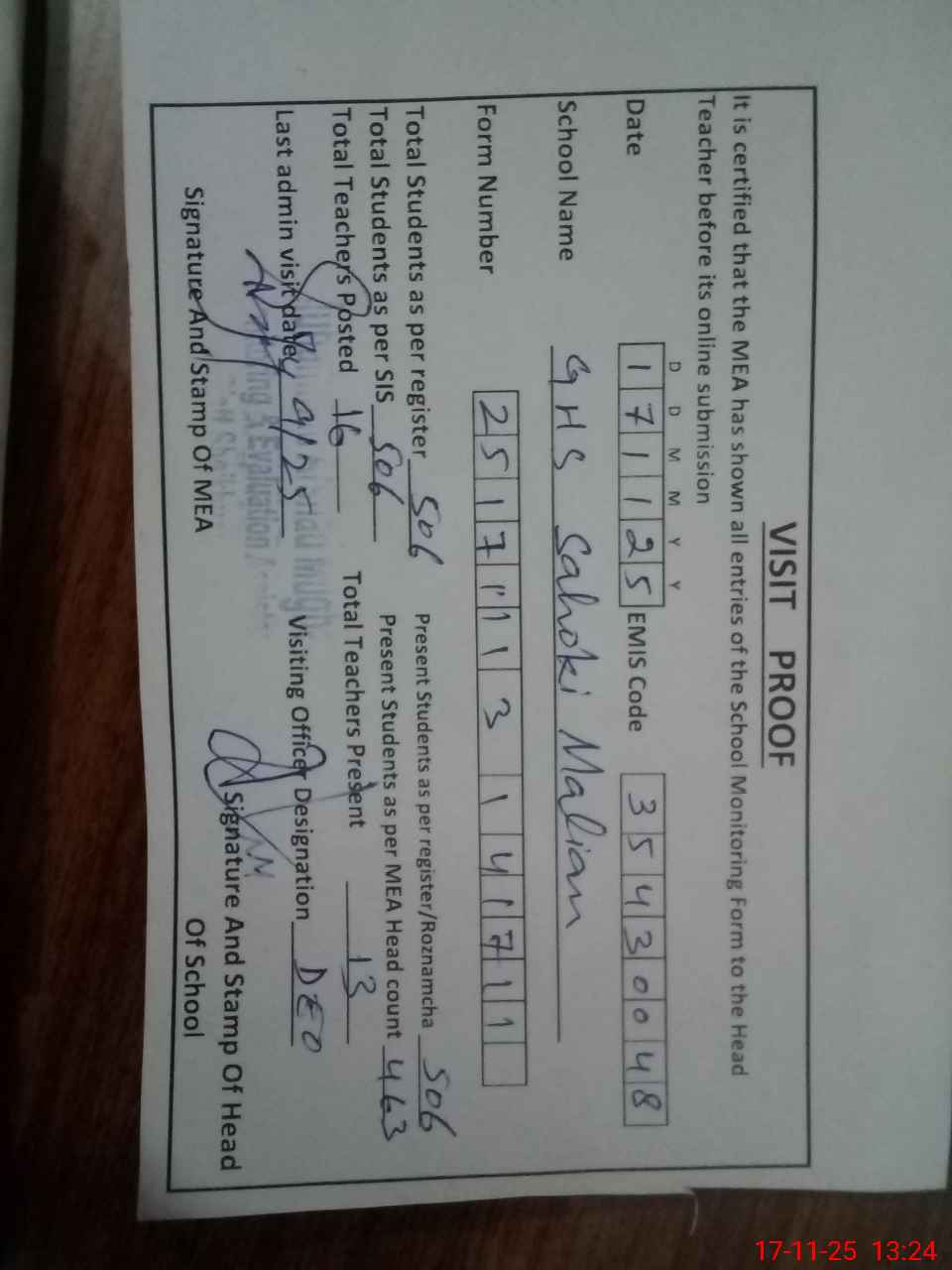 | EMIS Code: 35430048 | Name of School: GHS SAHOKI MALLIAN | |||