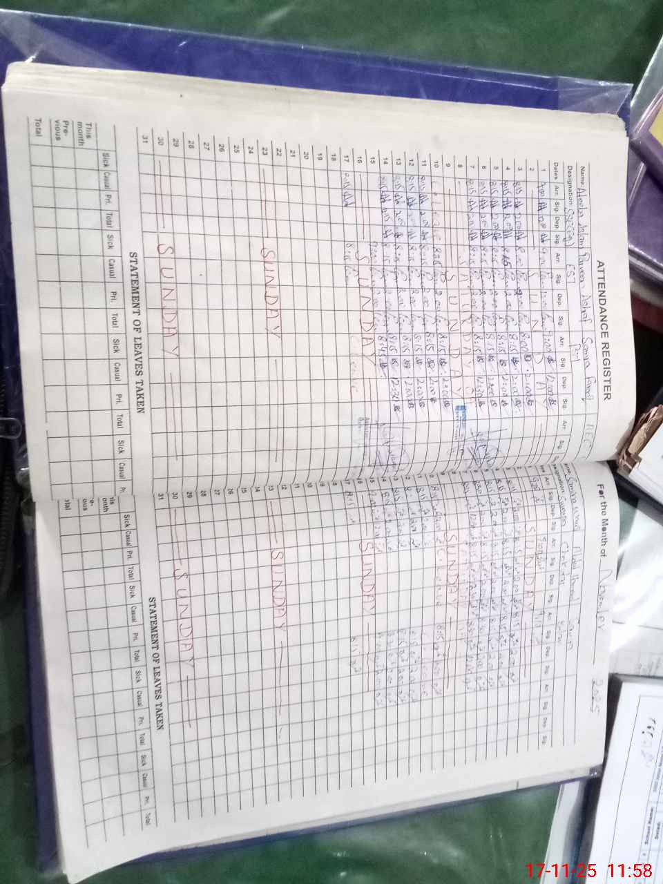 | CNIC | Full Name | Designation | R/C | Absence During Last Calender Month |