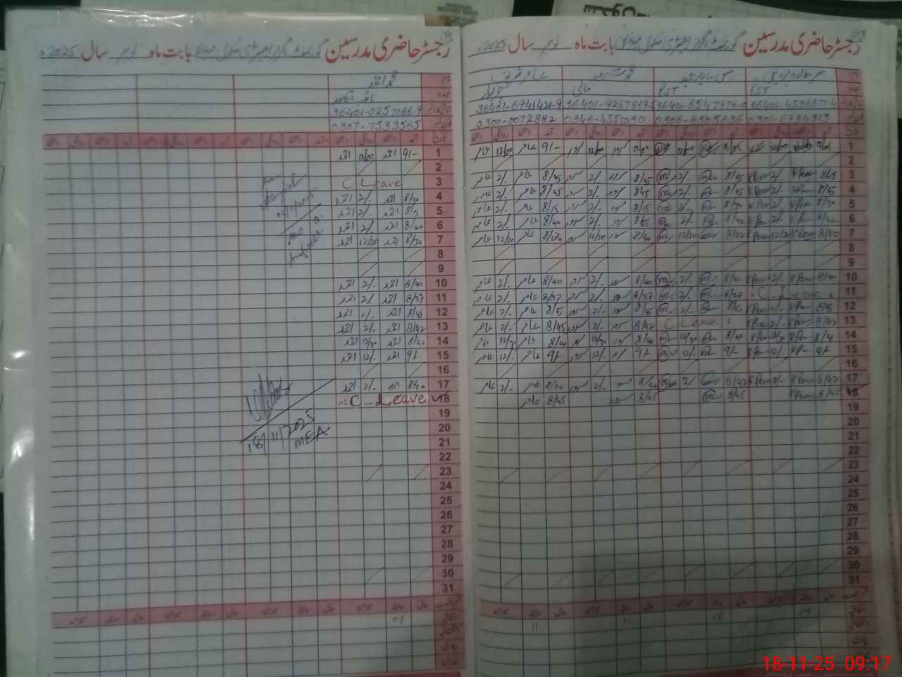 | CNIC | Full Name | Designation | R/C | Absence During Last Calender Month |
