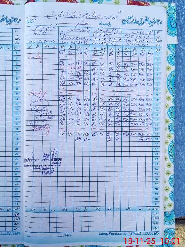 | Remarks (Use Separate Page if Required): Visit the school on 18 November 2025 Overall cleaning not satisfactory Daily rooznamcha not maintained | |||||