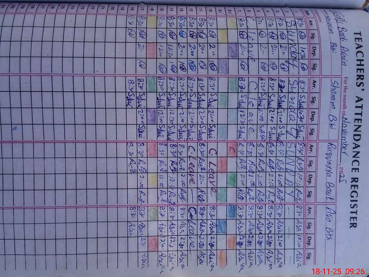 | CNIC | Full Name | Designation | R/C | Absence During Last Calender Month |
