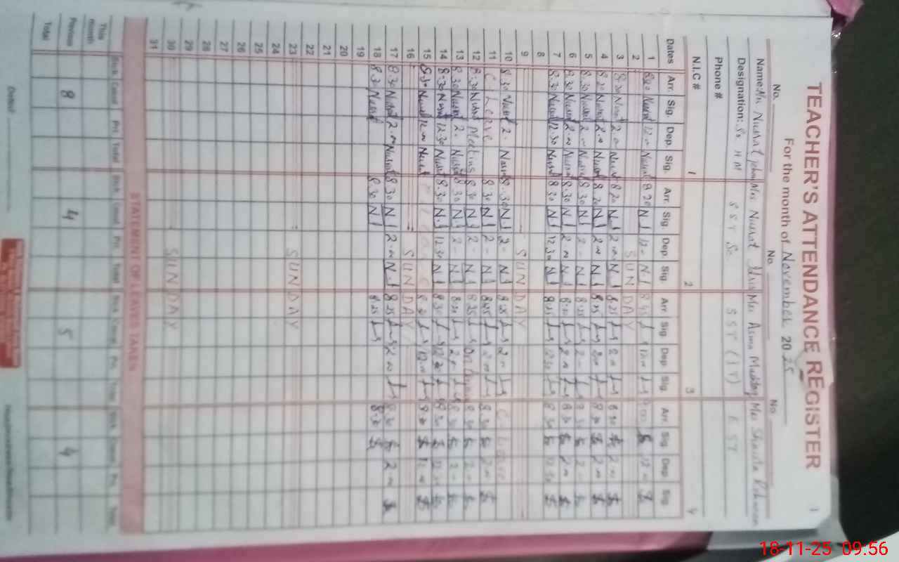 | Remarks (Use Separate Page if Required): 01 teacher named Hina Islam EST is long absent since 04 OCT 2025 | |||||