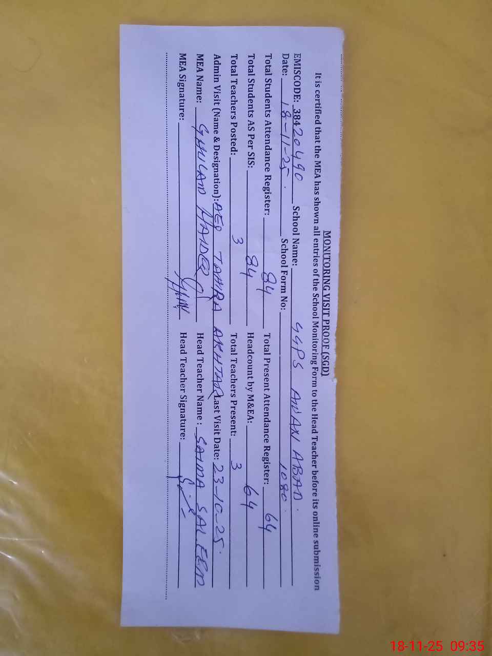 | EMIS Code: 38420490 | Name of School: GGPS AWAN ABAD | |||