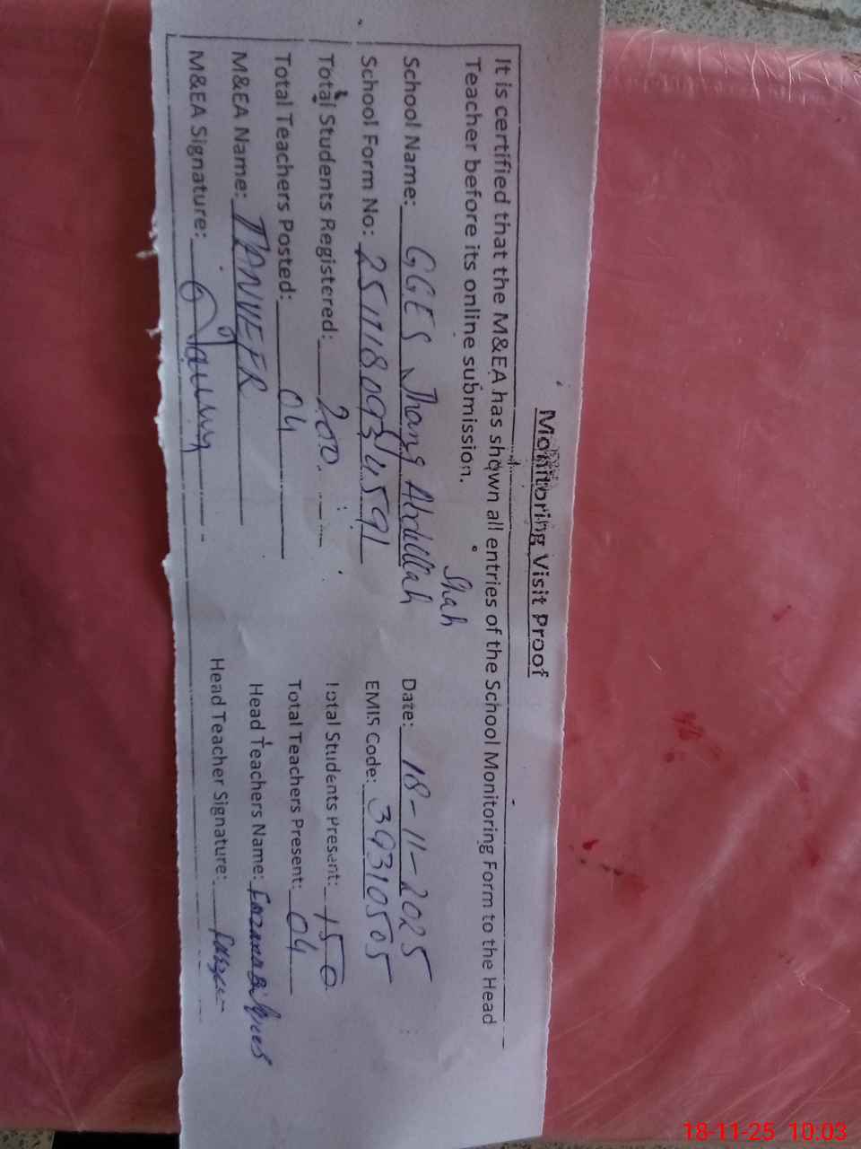 | EMIS Code: 39310505 | Name of School: GGES JHANG ABDULLAH SHAH | |||