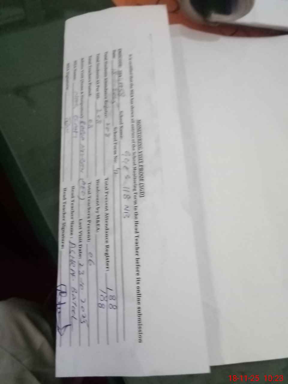 | Attendance Register | Head Teacher | MEA with School | Visit Proof |