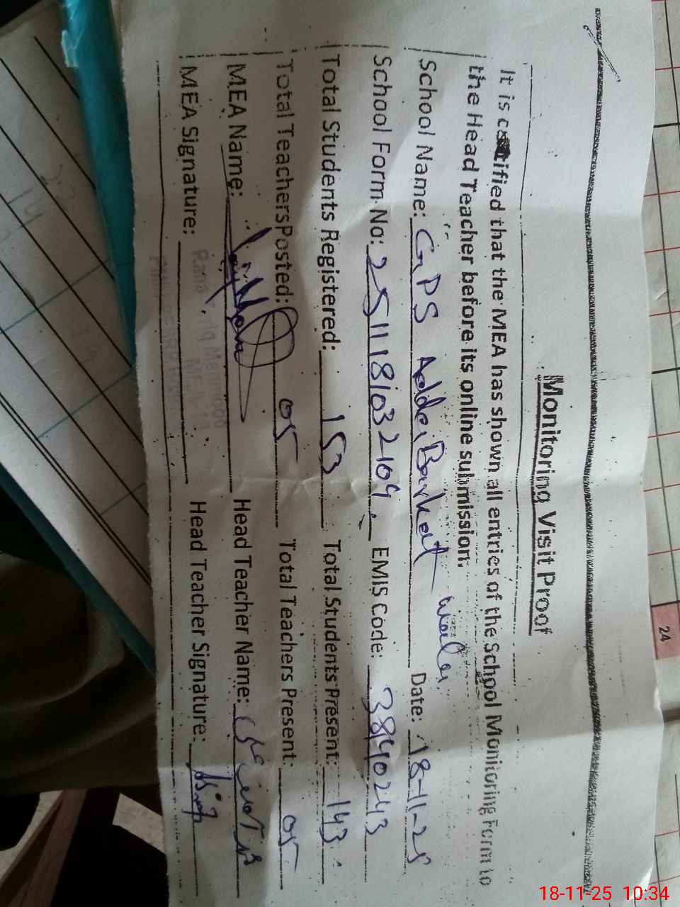 | EMIS Code: 38140243 | Name of School: GPS ADDA BARKAT WALA | |||