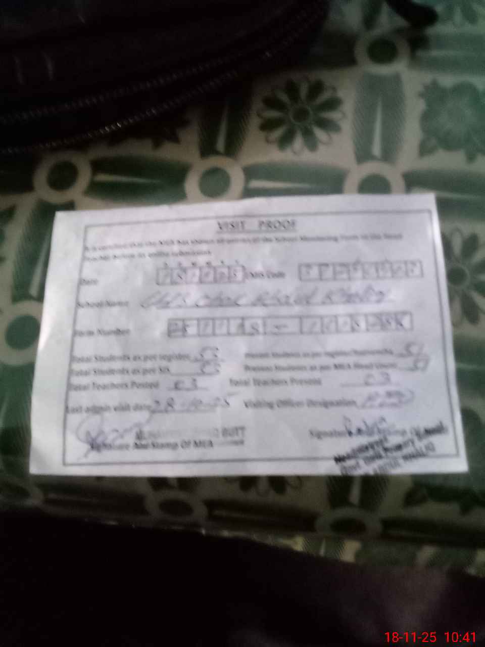 | Certified that this School was Inspected by the Undersigned MEA/DMO Today and the Information Stated Above is as Per Record. | |||||