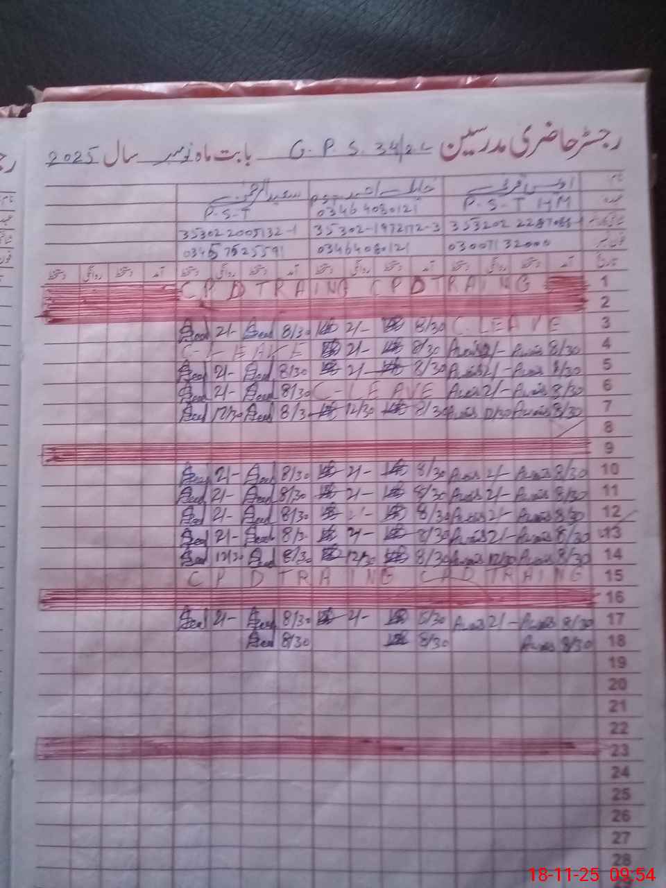 | CNIC | Full Name | Designation | R/C | Absence During Last Calender Month |