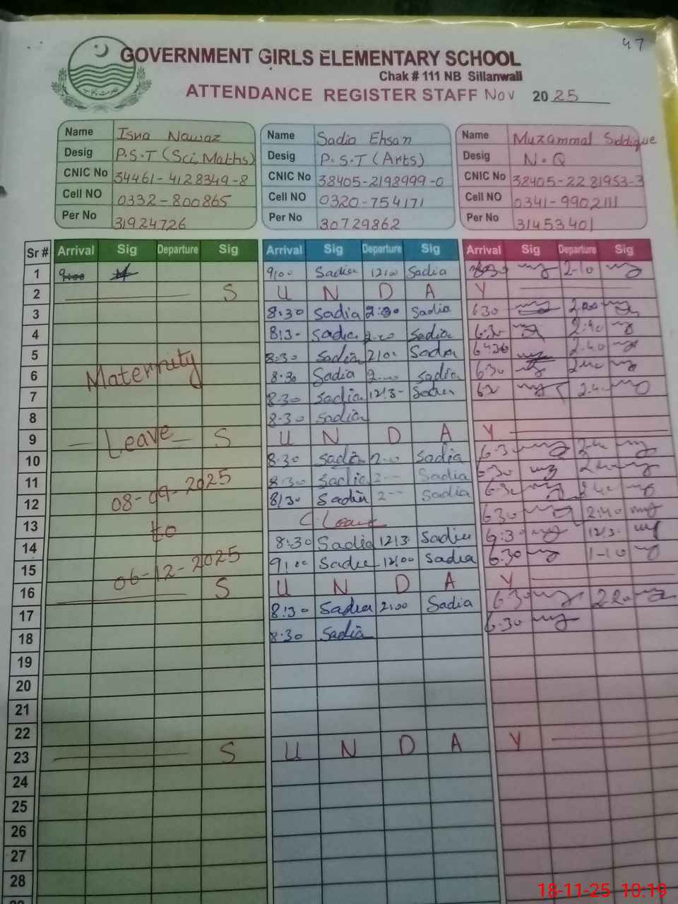 | 34**** | Is**** Na**** | Regular | 31 | 0 | 0 | 31 | 0 | 0 | 0 | 0 | 0 | Maternity | |