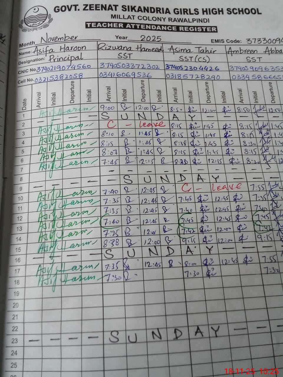 | EMIS Code: 37330094 | Name of School: GGHS ZINAT SIKANDRIA RWP | |||