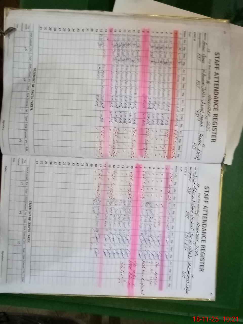 | CNIC | Full Name | Designation | R/C | Absence During Last Calender Month |