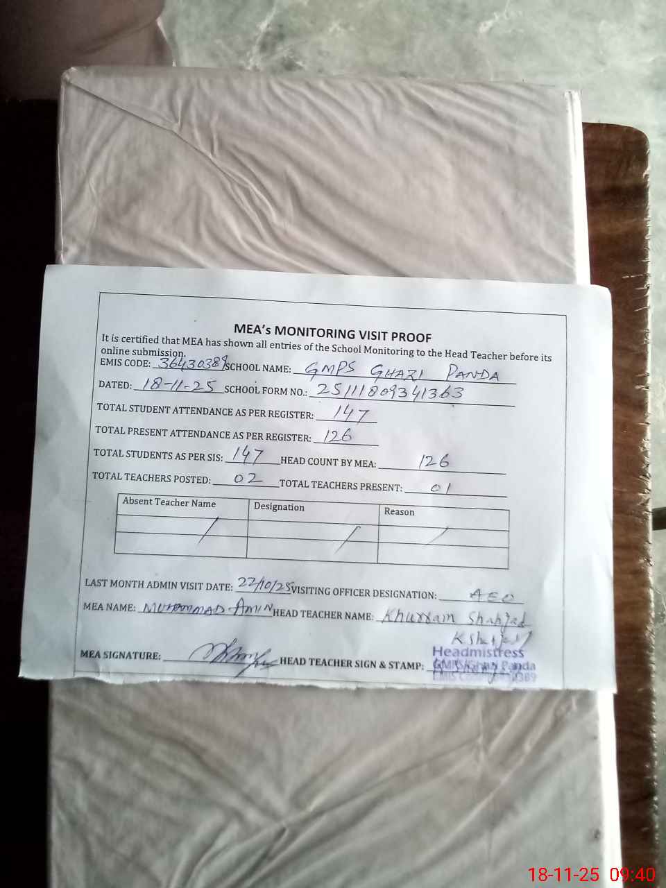 | EMIS Code: 36430389 | Name of School: GMPS GHAZI PANDA, TULAMBA | |||