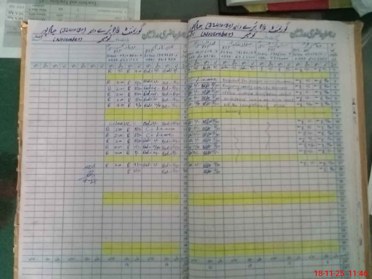 | CNIC | Full Name | Designation | R/C | Absence During Last Calender Month |