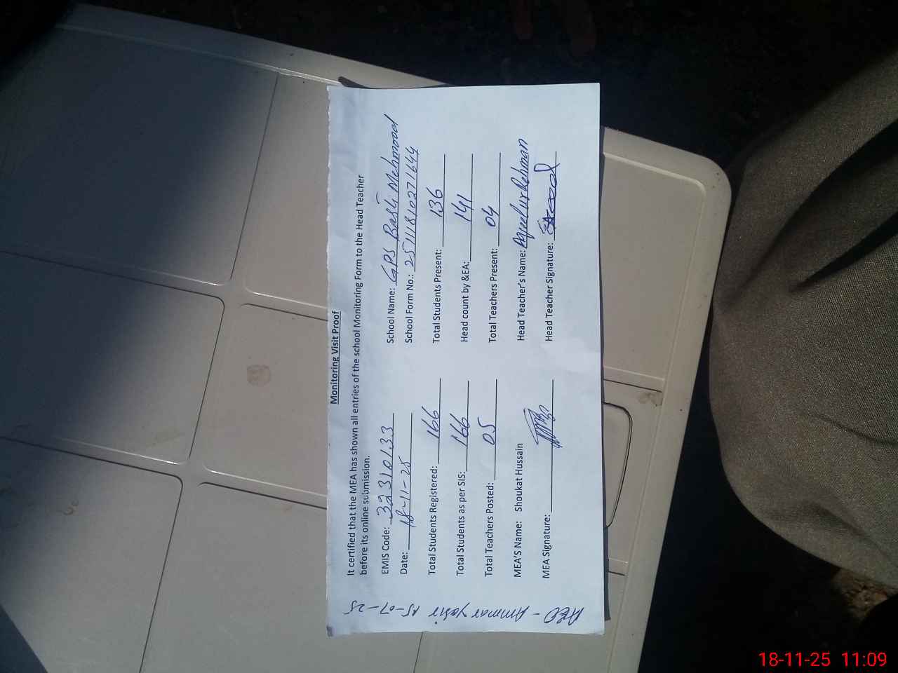 | EMIS Code: 32310133 | Name of School: GPS BASTI MEHMOOD | |||