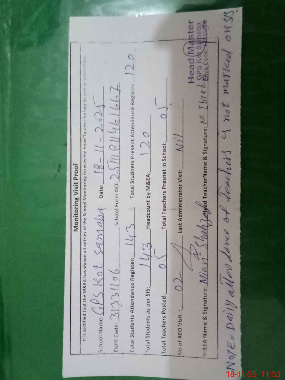 | EMIS Code: 31331106 | Name of School: GPS KOT SAMABA | |||