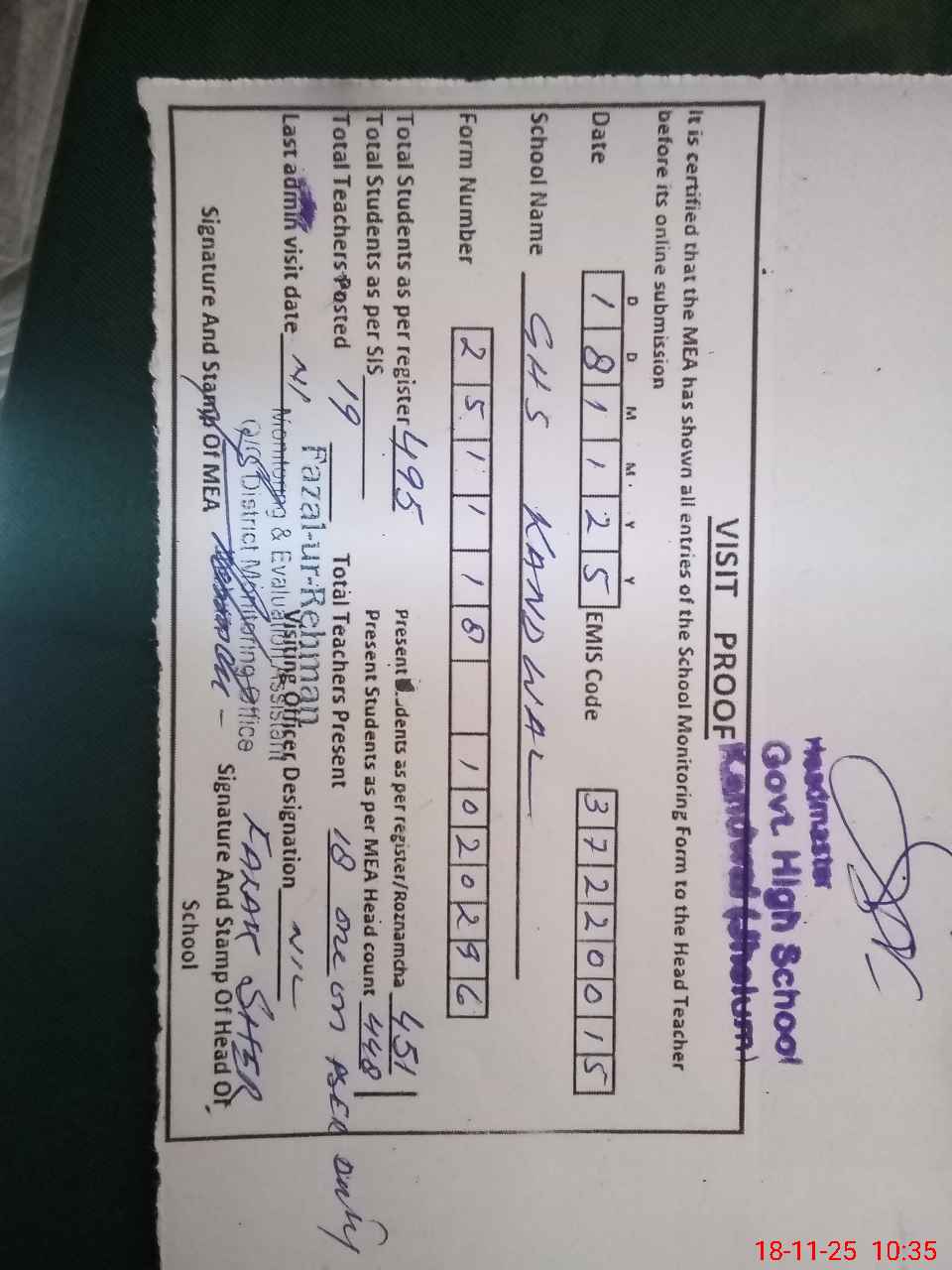 | EMIS Code: 37220015 | Name of School: GHS KANDWAL | |||