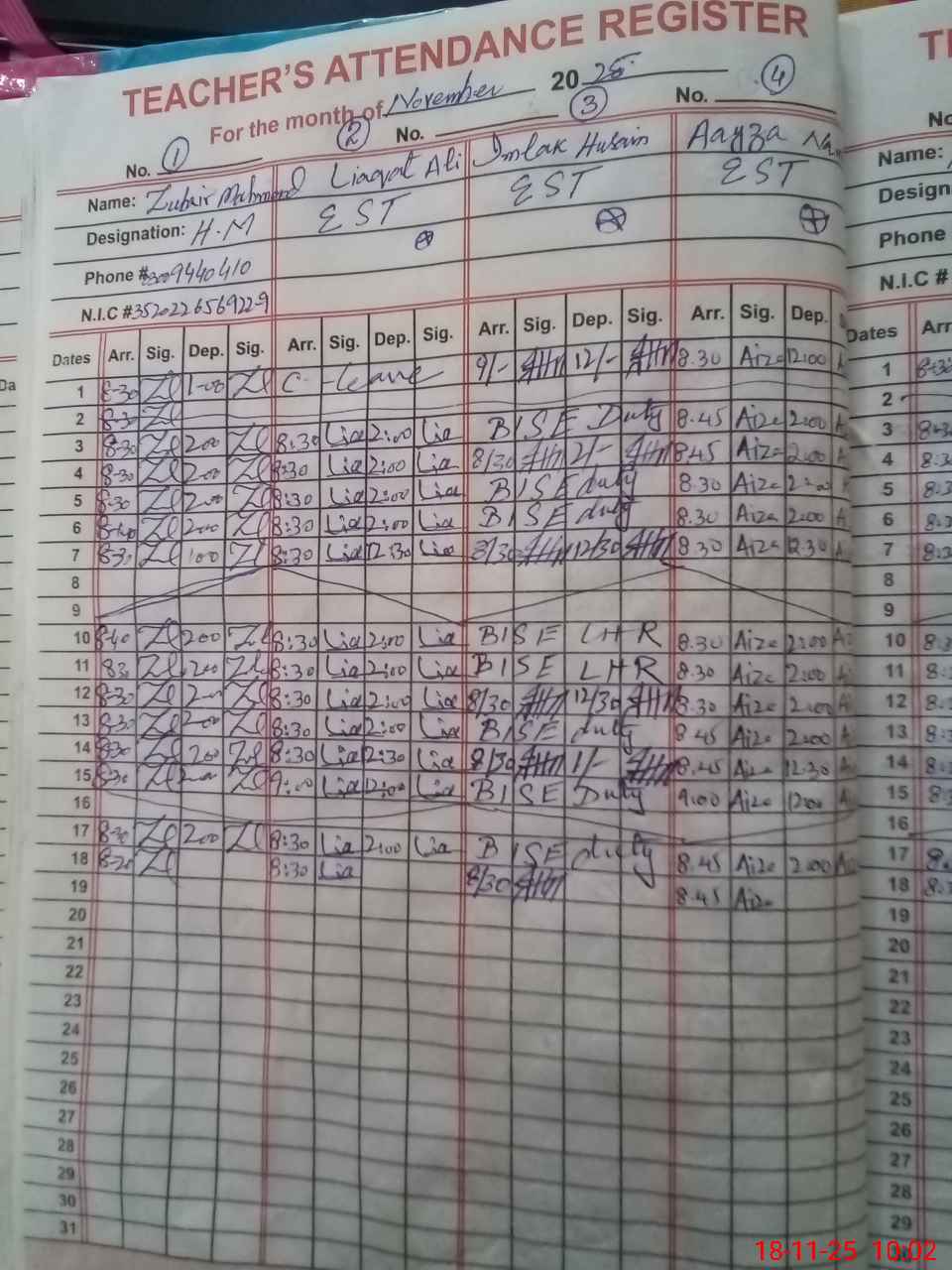 | Name: ZU**** ME**** Designation: (School Headmaster's/Headmistress's) SST Phone/Cell Number: 03**** |