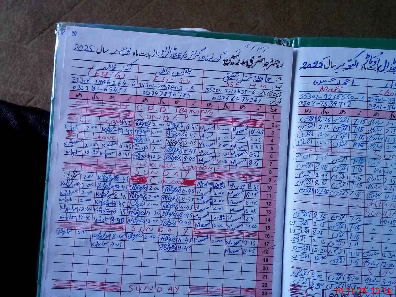 | CNIC | Full Name | Designation | R/C | Absence During Last Calender Month |