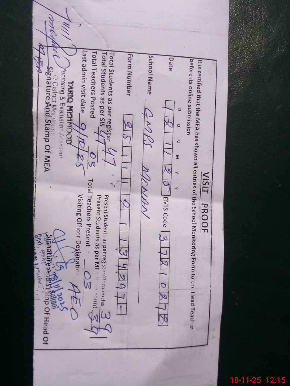 | EMIS Code: 37210278 | Name of School: GMPS MONAN | |||