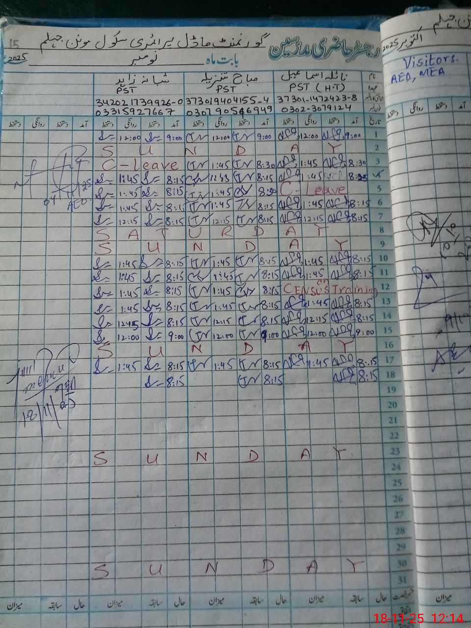 | Name: Na**** Is**** Designation: (School Headmaster's/Headmistress's) PST Phone/Cell Number: 03**** |