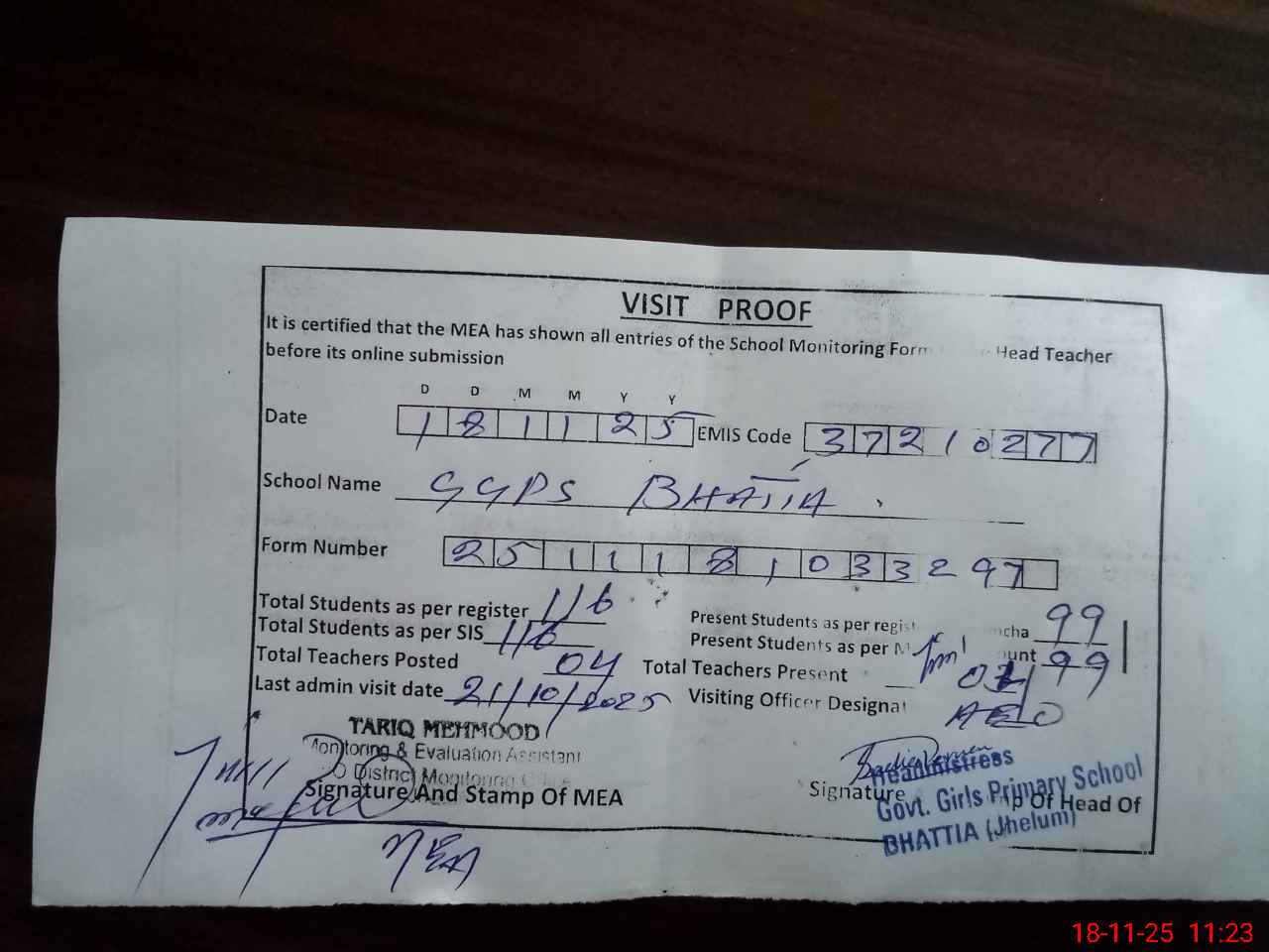 | EMIS Code: 37210277 | Name of School: GGPS BHATTIA | |||