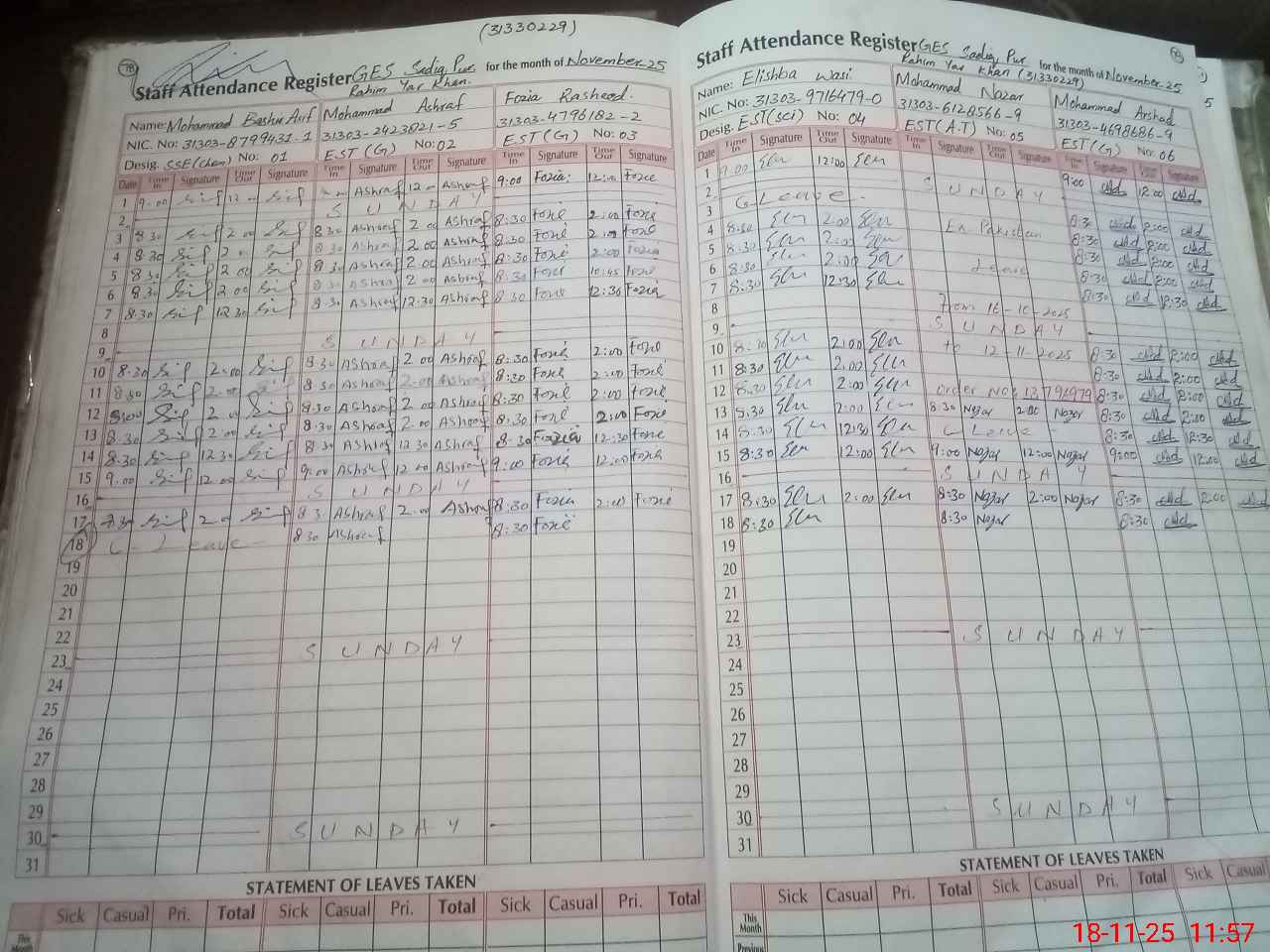 | 31**** | Za**** Iq**** | CBAILDAR | Regular | 0 | 0 | 31 | 0 | 0 | 0 | 0 | 0 | 0 | Absent (Un-Authorized) |