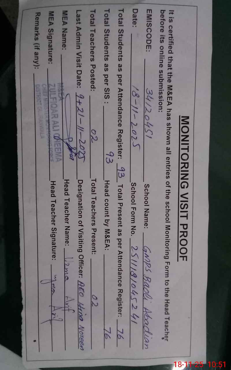 | EMIS Code: 34120451 | Name of School: GMPS BAOLI ABADIAN | |||