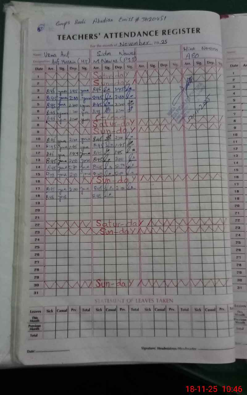 | Name: Uz**** Ar**** Designation: (School Headmaster's/Headmistress's) PST Phone/Cell Number: 03**** |