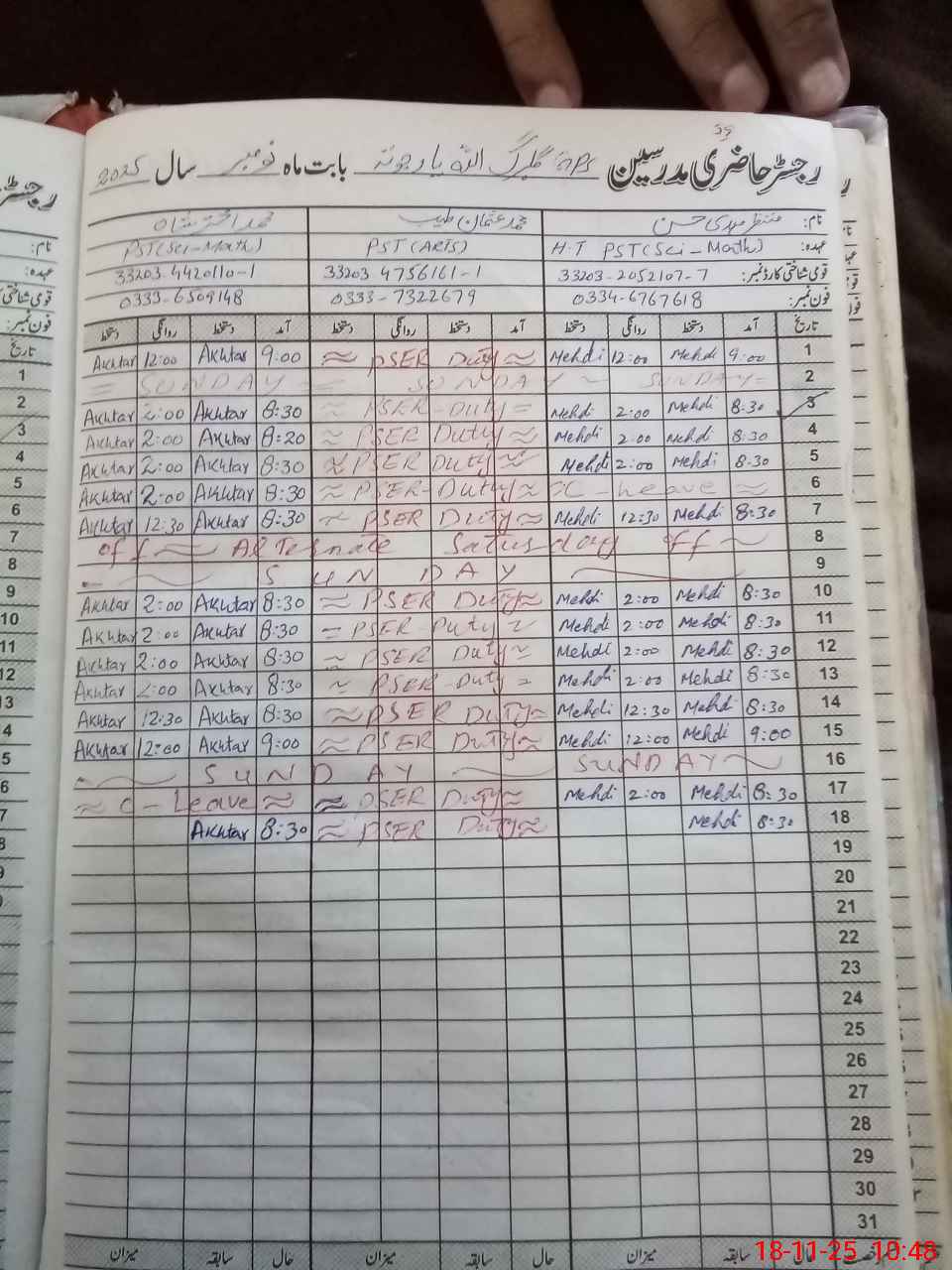 | Name: MU**** ME**** HA**** Designation: (School Headmaster's/Headmistress's) PST Phone/Cell Number: 03**** |