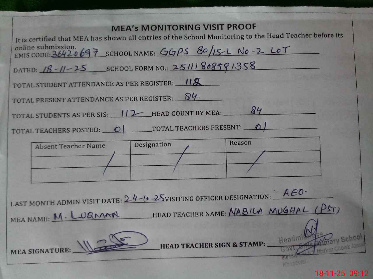 | EMIS Code: 36420697 | Name of School: GGPS 80/15-L NO.2 LAT, KACHA KHUH | |||