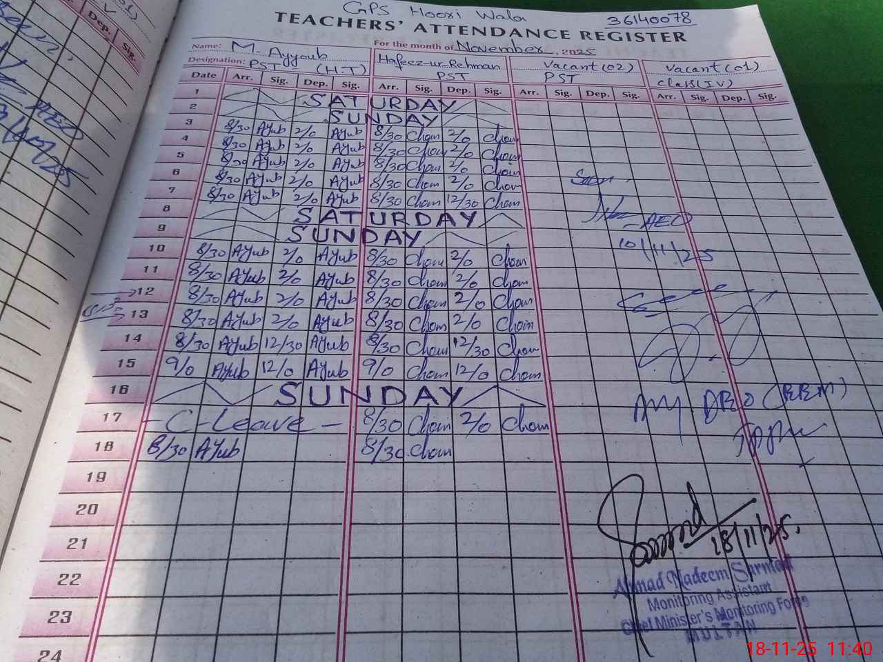 | Name: M.**** Designation: (School Headmaster's/Headmistress's) PST Phone/Cell Number: 03**** |