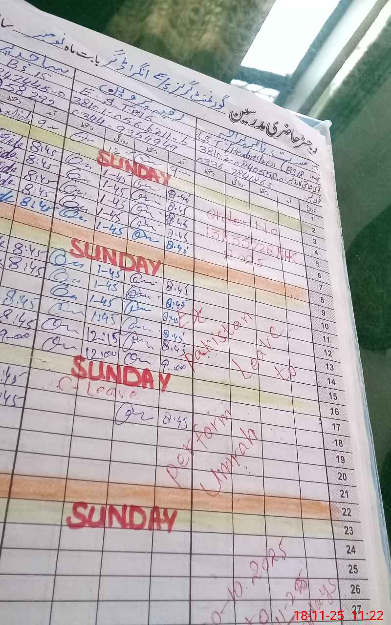 | CNIC | Full Name | Designation | R/C | Absence During Last Calender Month |