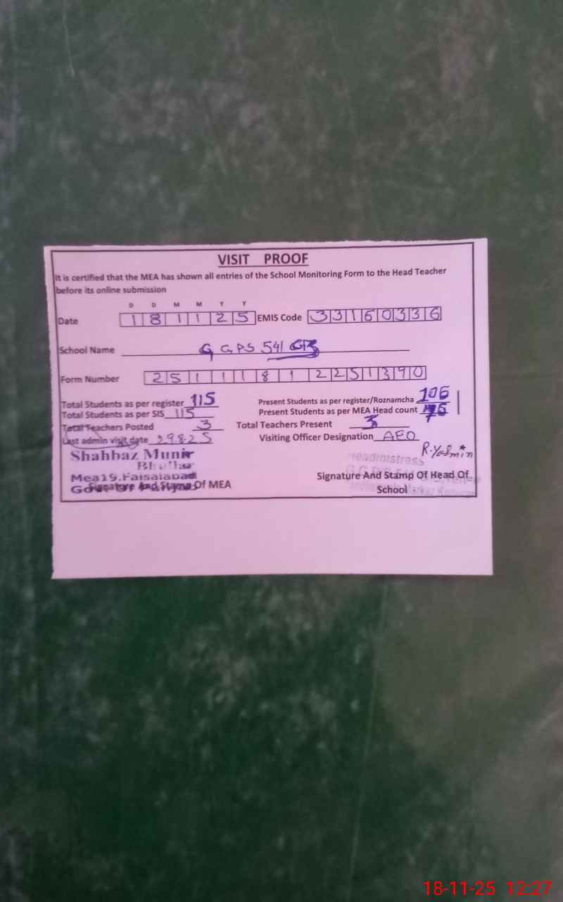 | EMIS Code: 33160336 | Name of School: GGPS 541/GB | |||