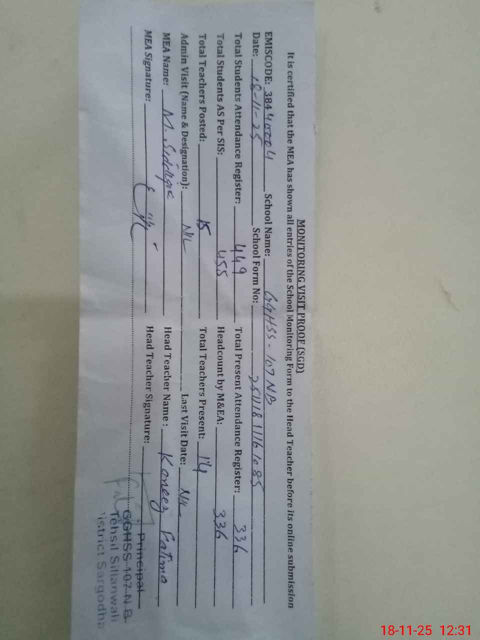 | EMIS Code: 38440004 | Name of School: GGHSS CHAK NO.107 NB | |||