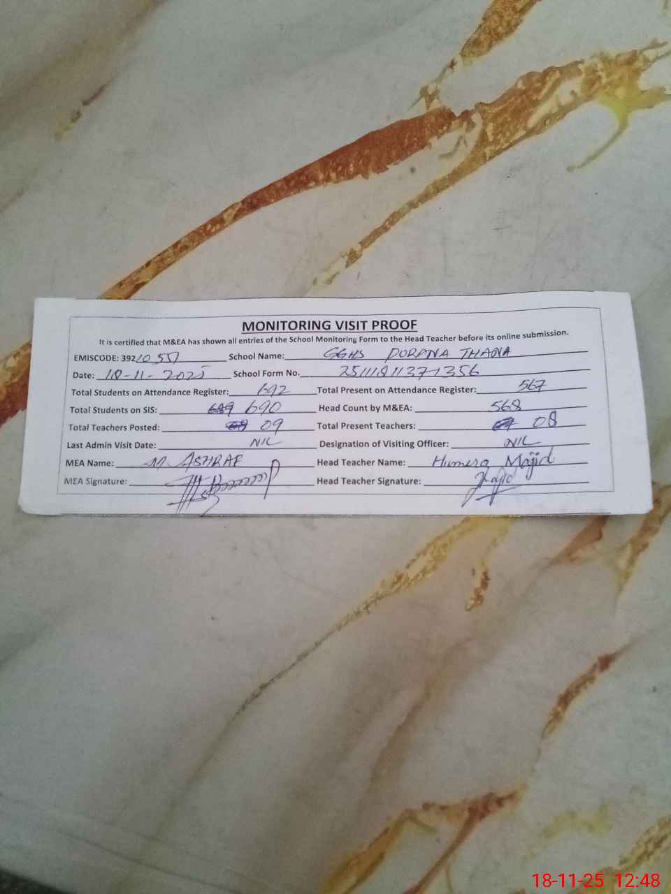 | EMIS Code: 39210551 | Name of School: GGHS PURANA THANA | |||
