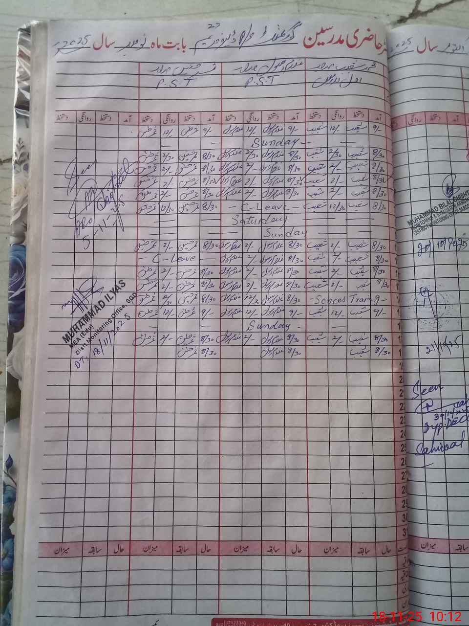 | CNIC | Full Name | Designation | R/C | Absence During Last Calender Month |